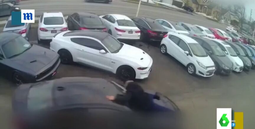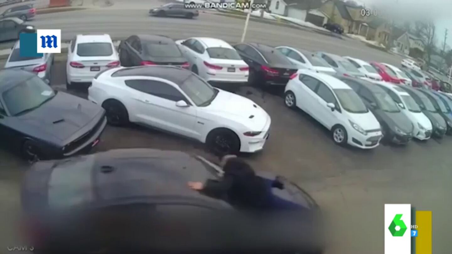 Las imágenes de un robo de película en un concesionario: el vendedor salta por encima del capó para evitarlo