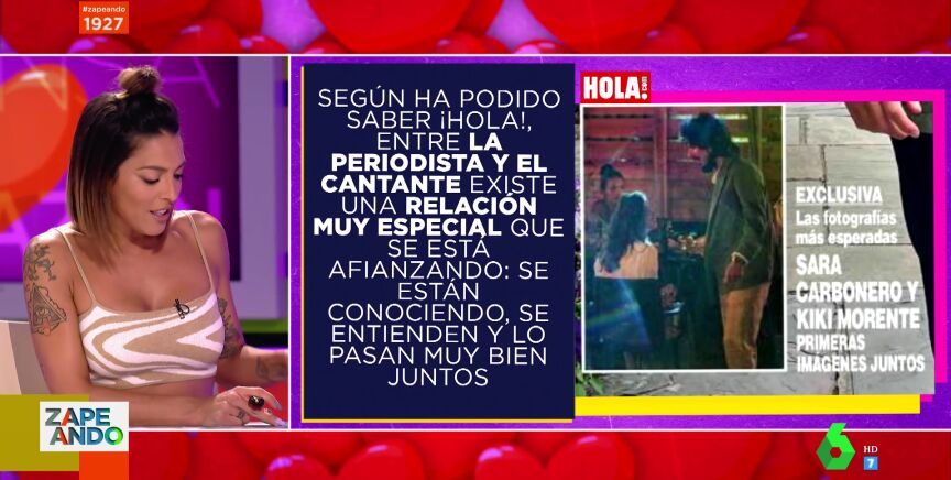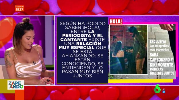 Lorena Castell continúa en la nueva temporada de Zapeando con su semanal sección de las revistas del corazón, en la que la zapeadora repasa las noticias más destacadas de las portadas. En este vídeo, Castell analiza las primeras imágenes de Sara Carbonero con Kiki Morente que confirmarían su relación.