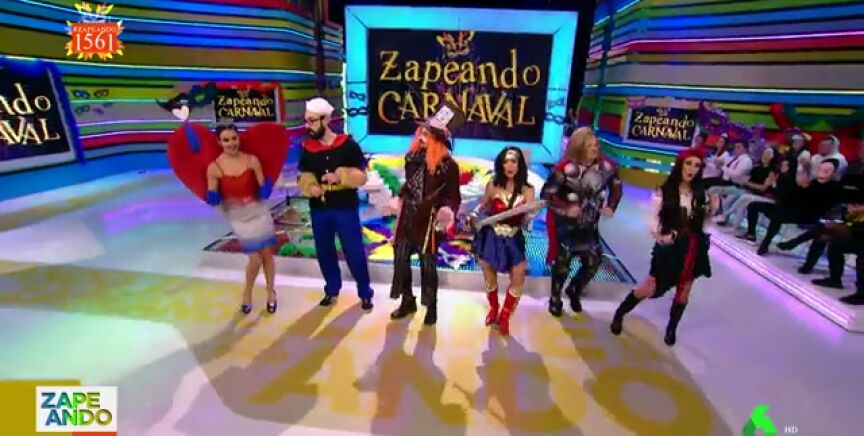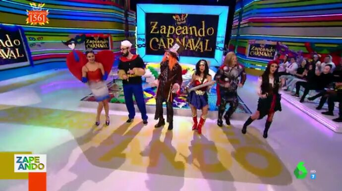 Para celebrar el carnaval, los 'zapeadores' se disfrazan de algunos de los personajes más famosos de la ficción. "Lo sé, estoy ridículo, pero me consuela que no soy el único", comenta Dani Mateo.