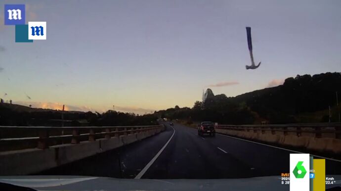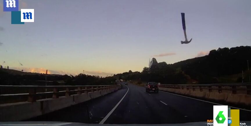 Un martillo impacta volando contra el parabrisas de un coche en plena carretera