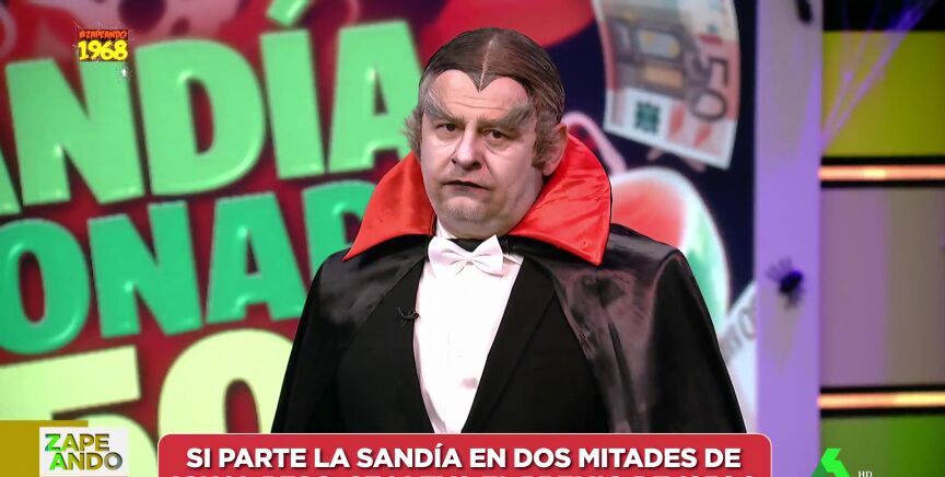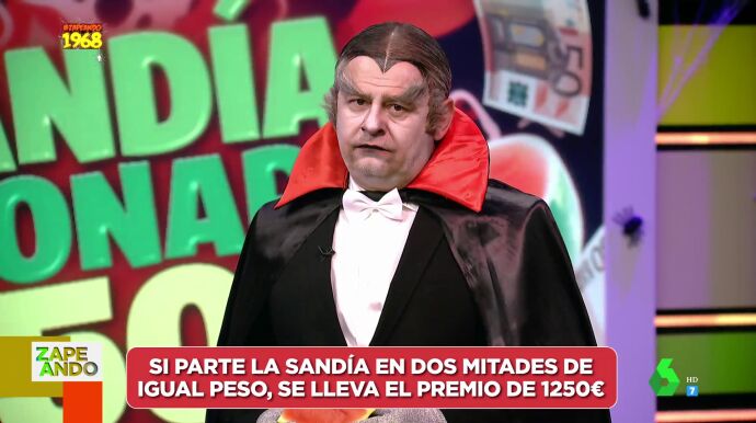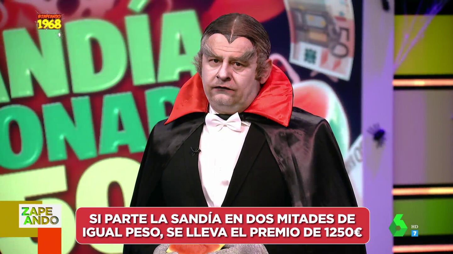 Este viernes hemos disfrutado en Zapeando de la Sandía Millonaria Especial de Halloween, con la que un espectador podía ganar 1.250 euros. Pese a que el juego no ha empezado bien, puesto que dos personas no han cogido el teléfono, finalmente al tercer intento ha contestado Rocío, de Hellín, Alcabete, quien ha elegido a Miki Nadal para cortar la sandía, a la que han llamado 'Ruperta', en dos mitades iguales.
