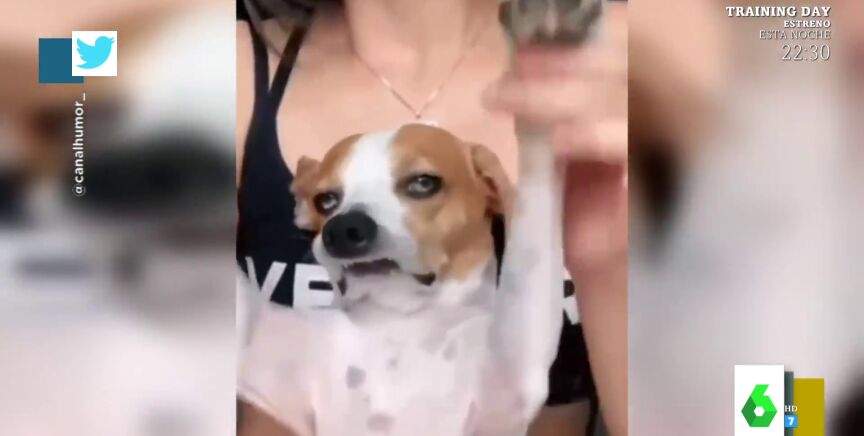 En las redes sociales hemos visto multitud de vídeos de mascotas disfrutando con sus dueños, pero no es el caso del perro que protagoniza este vídeo viral, que no puede disimular su hastío ante el baile que le hace hacer su dueña.