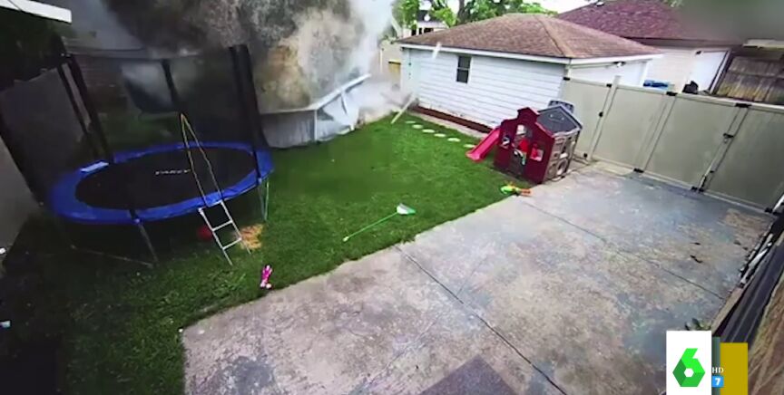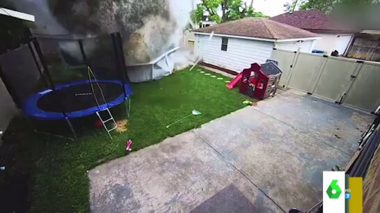 Una conductora atravesó la valla de la casa y se llevó por delante todo lo que había en el patio, también una cama elástica y una piscina llena de agua. Puedes ver el momento en este vídeo.