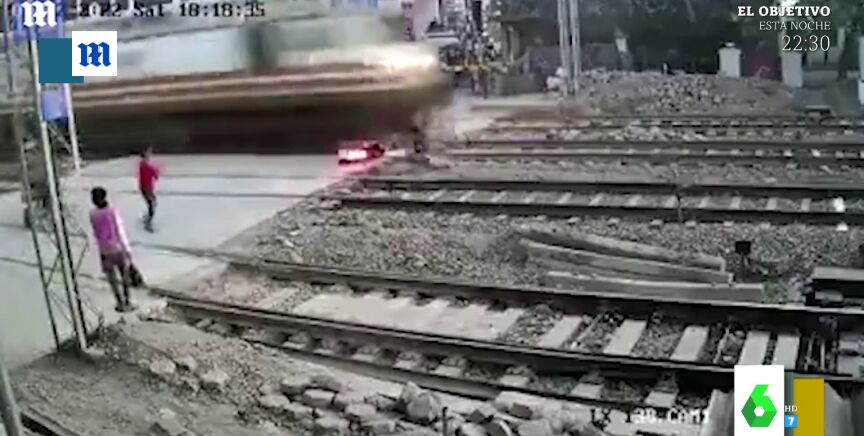 Cruzar las vías del tren en Bombay es algo muy peligroso. Al menos, a juzgar por lo que le ocurrió al motociclista que protagoniza el vídeo que ilustra estas líneas.