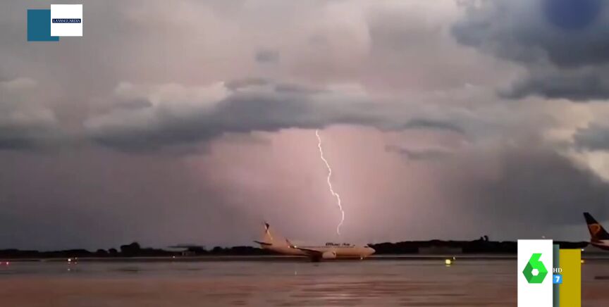 El momento en el que un rayo impacta contra un avión en plena tormenta en El Prat