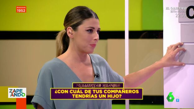Zapeando ha salido a la calle para que los ciudadanos lancen preguntas 'heavies' a los zapeadores, como la que ha tenido que responder Valeria Ros en el plató: "¿Con cuál de tus compañeros tendrías un hijo?".