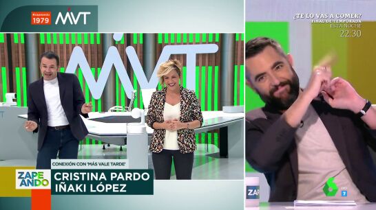 Además, tras ver una canción en el Chiringuito de Jugones, Iñaki López comienza a cantar y bailar en plató: "Yo bailo como un señor mayor desde que era crío". Pero la cosa no acaba ahí y es que el presentador vasco no puede evitar hacer sus "movimientos sensuales" durante la conexión. Además, ante la invitación de Dani Mateo de acudir a Zapeando, Iñaki López le vacila con un dardo: "¿Programas de humor hay en laSexta?". Algo a lo que Dani Mateo contesta directamente con una peineta. Puedes ver la cómica conexión al completo en el vídeo de arriba.