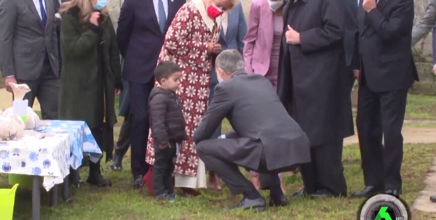 Los reyes visitaron una escuela rural de Galicia para entregarle el premio a mejor escuela del año. Todos estaban atentos, excepto un niño, que ignoró a los reyes, e incluso les dio la espalda. Y no fue un momento, sino que mientras los reyes hablaban al resto de alumnos, él estaba a lo suyo. El rey, dándose cuenta de la situación, se acercó al menor y se puso a su altura para hablar con él, pero no hubo manera de conseguir que el niño hablara.