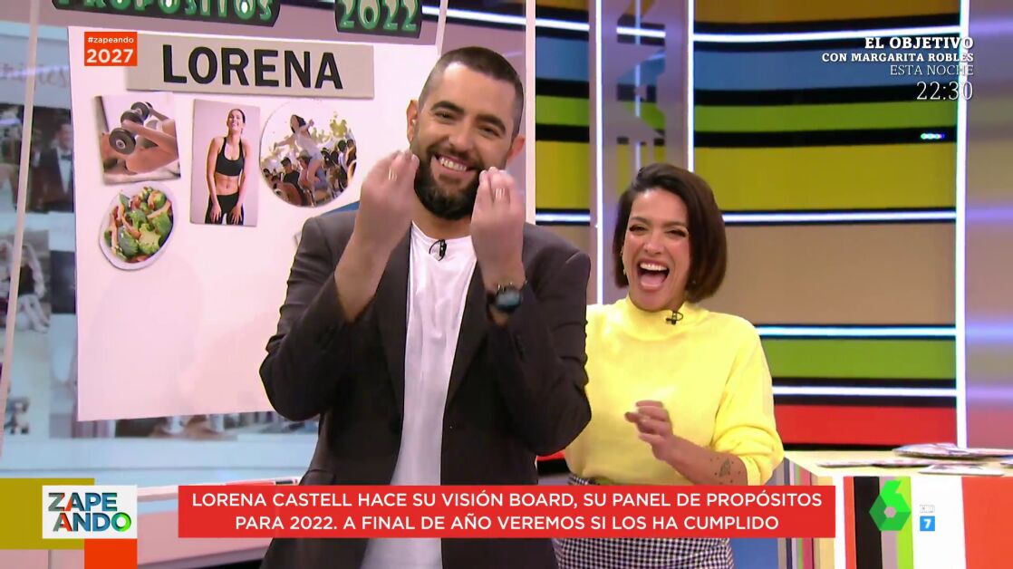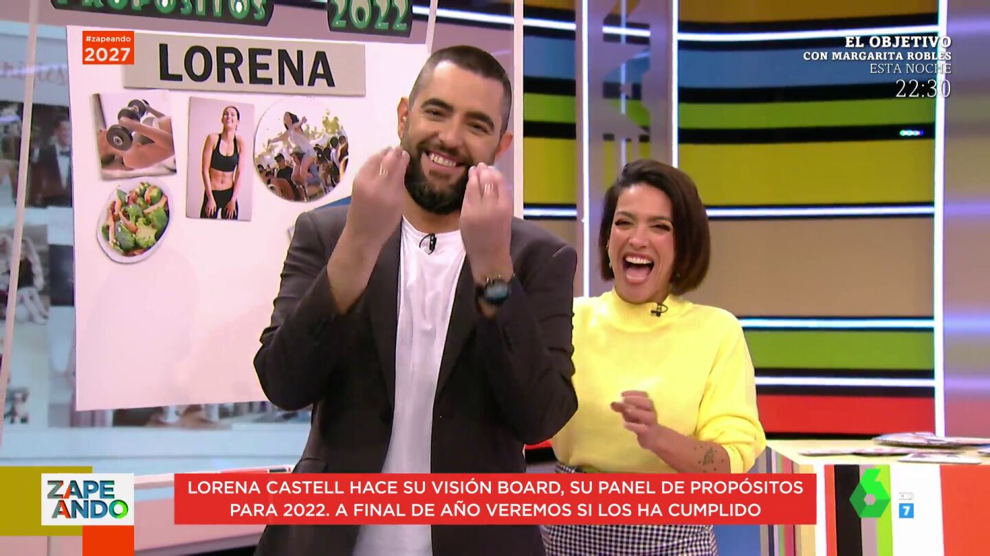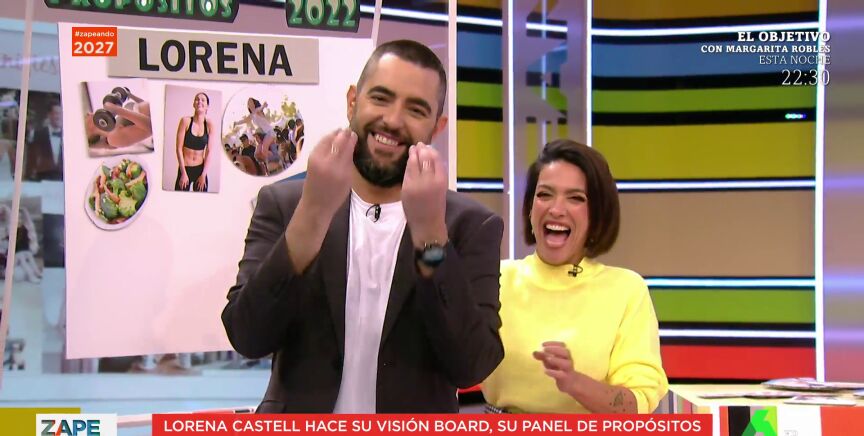 Ana María Simón y Paula Arcila visitan el plató de Zapeando para reflexionar sobre los objetivos que nos proponemos para el nuevo año. Una de las herramientas que se usan para hacerlo son los tablones de propósitos, donde las personas ponen imágenes y mensajes relacionados con los objetivos a cumplir en un panel. Para ver cómo funciona, Lorena Castell hace su 'vision board' en pleno directo.