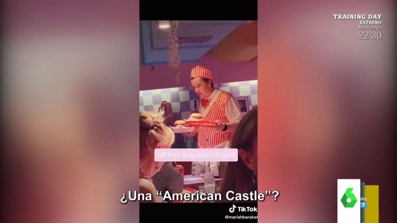 Desde máquinas de discos y suelo de cuadros a colores pastel, "es el típico sitio donde puedes acompañar la hamburguesa con un batido de fresa", explica la zapeadora. Pero no solo eso, el restaurante se ha querido diferenciar más con un objetivo: tratar mal al cliente. "Así que los clientes tratan para que les insulten y traten mal", destaca Miki Nadal. En el vídeo principal de esta noticia puedes ver momentazos de los clientes, como la 'cálida' bienvenida que reciben: "¿Qué c*** hacéis ahí?, ¡entrad de una puta vez!".