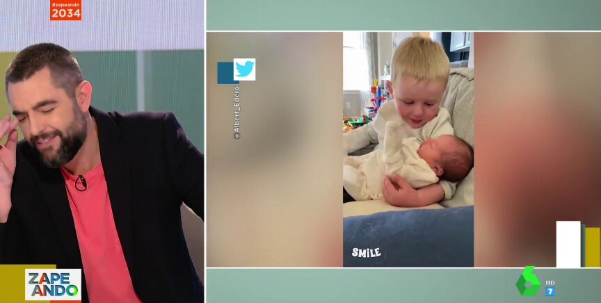 El presentador de Zapeando se conmueve tras ver este vídeo viral de un niño que se emociona al tener a su hermanito recién nacido en brazos.