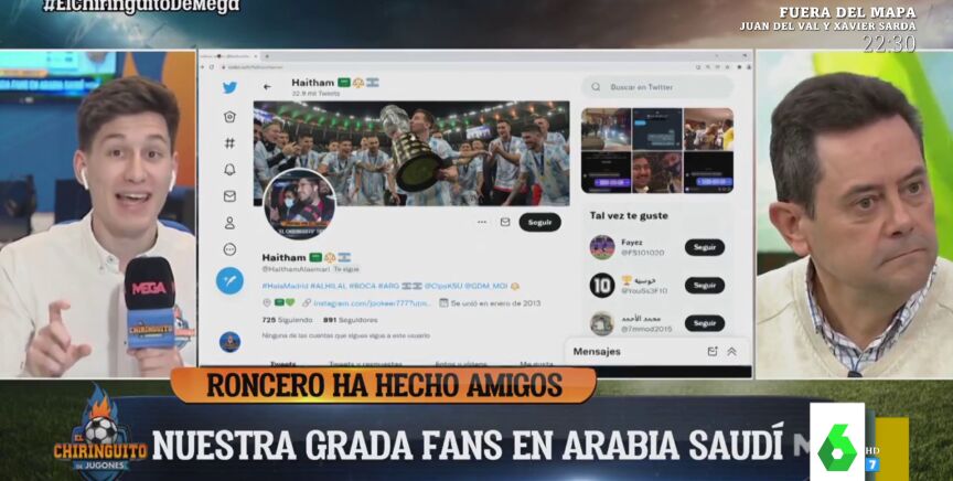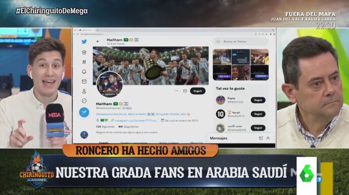 La Supercopa de España en Arabia Saudí tendrá como plato fuerte el Barcelona contra el Real Madrid. Los saudíes están muy emocionados por animar a sus ídolos, y no solo futbolistas. Allí también son fans de comentaristas deportivos como Tomás Roncero. Algo que ha quedado reflejado con las eufóricas declaraciones de un hombre en El Chiringuito de Jugones, donde no paraba de repetir que Roncero es el mejor.