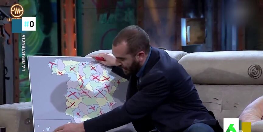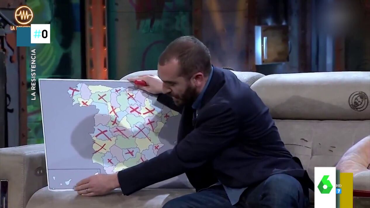 Jorge Ponce se propuso el reto en 'La Resistencia' de criticar a las 50 provincias españolas y a las dos ciudades autónomas. En cada programa se ha centrado en faltar a una, hasta que no ha quedado centímetro de territorio sin recibir las 'pullitas' de Jorge Ponce.
