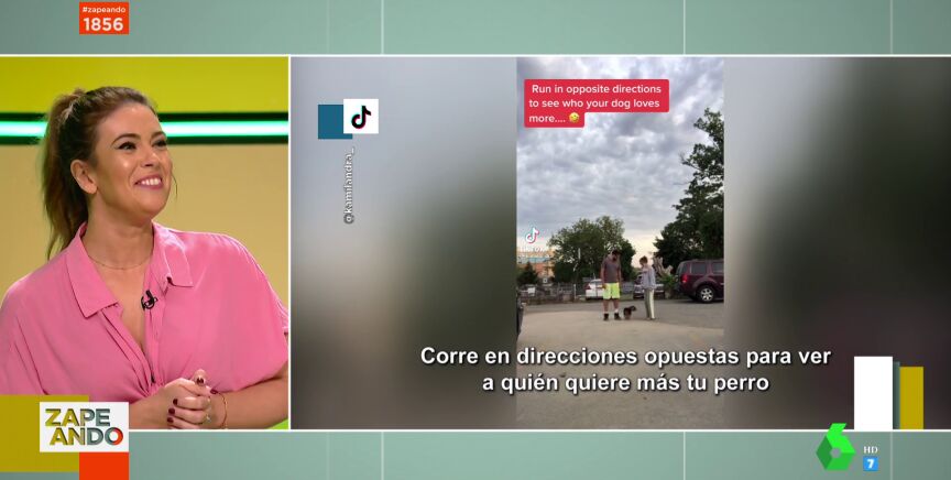 Cristina Plaza trae a Zapeando un 'challenge' viral para plantear a nuestro perro la clásica pregunta: "¿A quién quieres más, a papá o a mamá?". El truco consiste en correr en direcciones opuestas para ver a quién sigue el can. Su decisión, supuestamente, reflejará a quién quiere más.