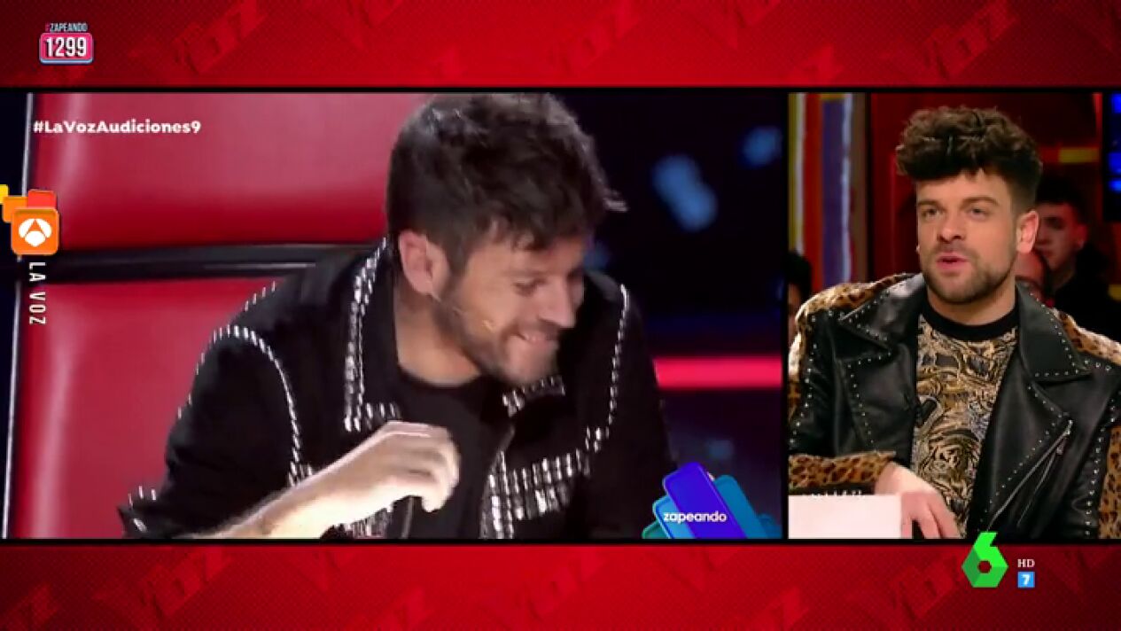 Ricky Merino llega a Zapeando para analizar los momentazos de 'La Voz' de Antena 3. Uno de ellos es el clásico duelo por el concursante entre Pablo López y Antonio Orozco. Esta vez, los coaches se enfrentan por la potente voz de Hannah Labotka tras su actuación de 'Make your feel my love'.