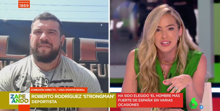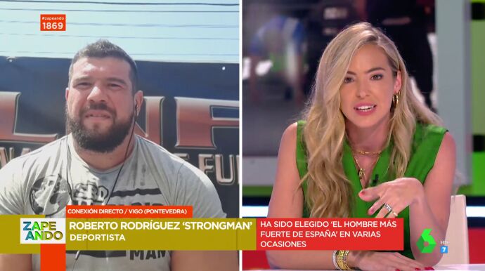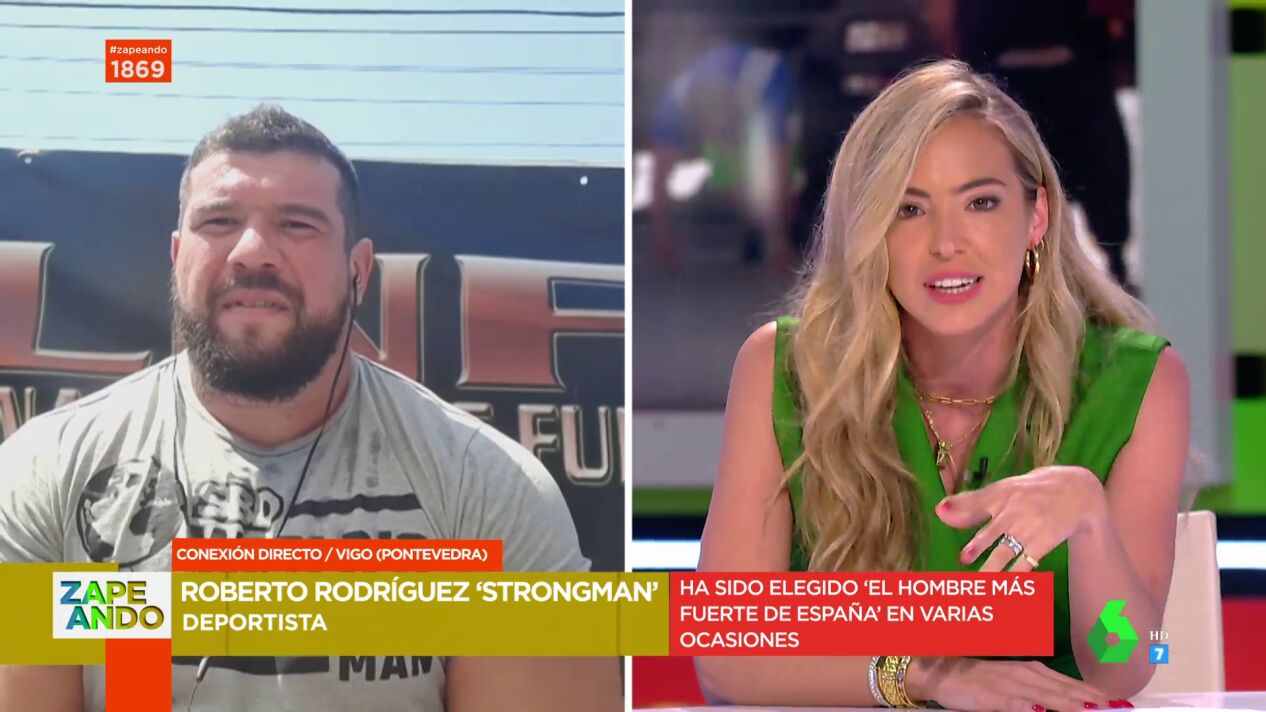 Zapeando habla en directo con el hombre más fuerte de España, Roberto Rodríguez, que detalla cómo es su dieta y cuenta cuáles son sus próximos retos. "Ahora mismo, estoy en 157 kilos", asegura a Dani Mateo.