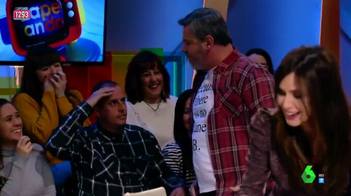 Su enfado llega a tal calibre, que el zapeador comienza a tirar los monitores y las sillas con las que se encuentra en plató. Incluso, Nadal se 'enfrenta' al público: le tira al suelo las gafas a uno chico y le quita la silla a una joven para que pase "todo el programa de pie".