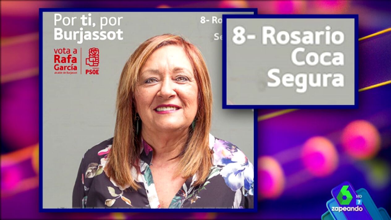 Frank Blanco destaca en Zapeando que hay varios "candidatos prometedores" para las elecciones del próximo 26 de mayo. Para muestra, el presentador del programa muestra el cartel electoral de la socialista Rosario Coca Segura, cuyo nombre deja a los zapeadores alucinados.