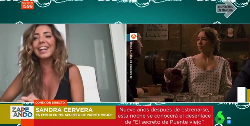 La actriz Sandra Cervera, que interpreta a Emilia en 'El secreto de Puente Viejo', cuenta en este vídeo de Zapeando los detalles de la serie, la cual, tras nueve años en emisión, llega a su fin.