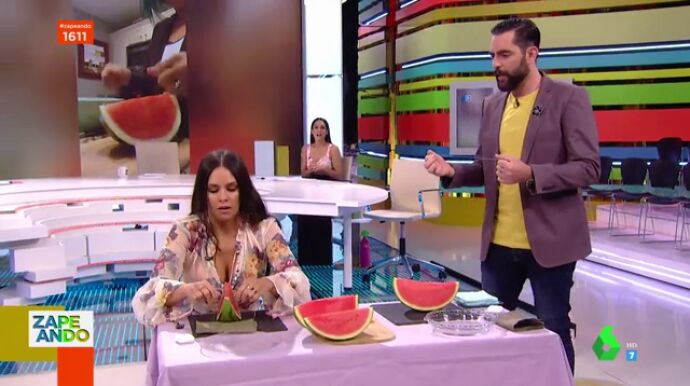 Pero, ¿de verdad se cortan trozos de sandía perfectos? Cristina Pedroche y Dani Mateo lo comprueban en pleno directo del programa.