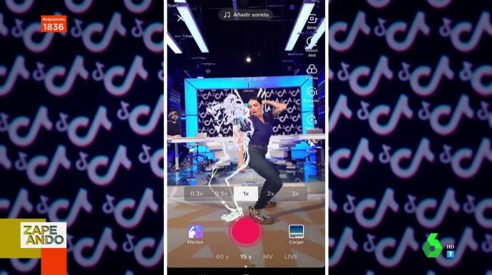 Cristina Plaza muestra en el plató de Zapeando uno de los últimos filtros virales. Se trata de un divertido efecto en el que puedes bailar contigo mismo. En concreto, bailar con tu reflejo. Dani Mateo propone a Lorena Castell y Miki Nadal que lo prueben en pleno directo. Pero no solo ellos, Cristina Plaza, Thais Villas y Dani Mateo también se suman a probar este divertido filtro.