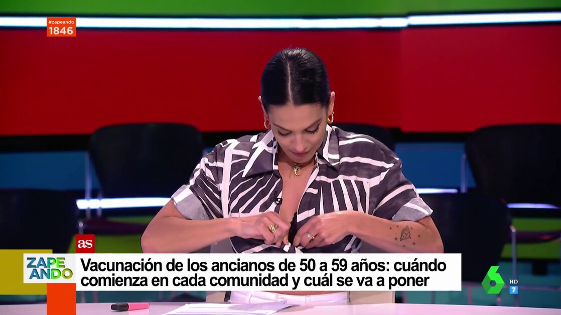 Dani Mateo comenta nada más empezar Zapeando un polémico titular que habla de la vacunación de las personas de entre 50 y 59 años como la vacunación de "ancianos". Una denominación que indigna a la mesa del programa. "Por el amor de dios, si los de 40 años somos adolescentes tardíos", destaca Dani Mateo mientras que Lorena Castell contesta al presentador. "Eso los que tengáis 40", bromea la zapeadora, que también tiene esa edad.