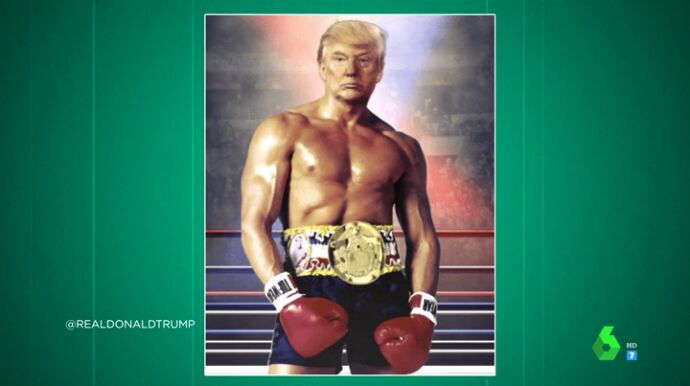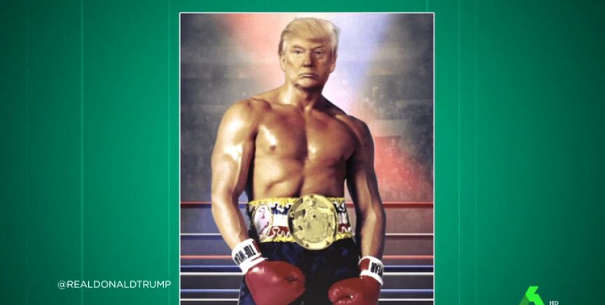 "Ha puesto la foto de él mismo con el cuerpo de Sylvester Stallone en Rocky", dice un alucinado Dani Mateo. Esta imagen, que el propio Trump ha sabido a sus redes sociales, ha desatado todo tipo de especulaciones y memes en Internet.