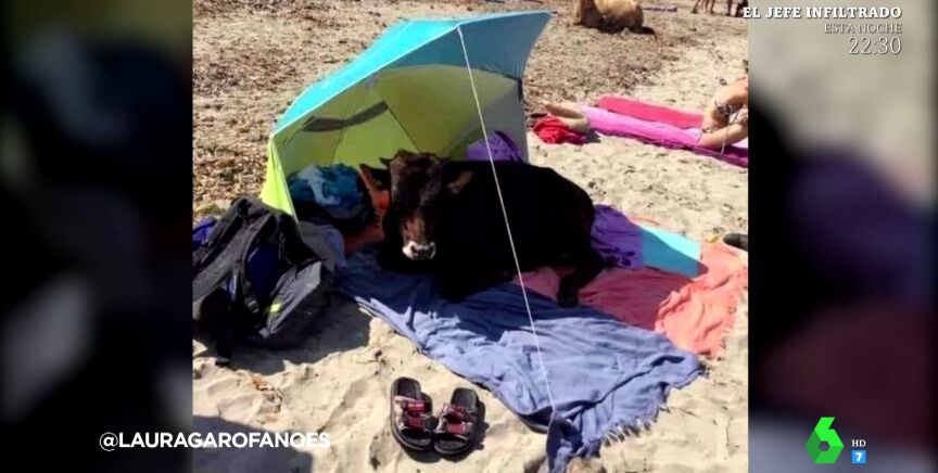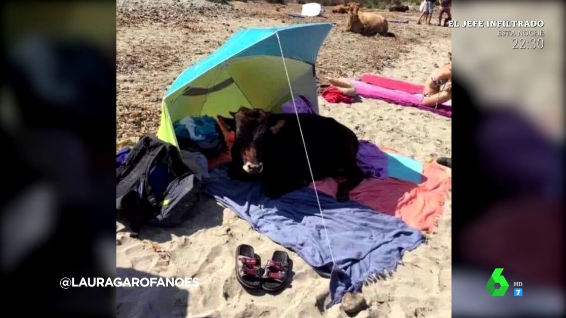 Al volver a su toalla, un bañista se percató de que alguien le había robado el sitio: ni más ni menos que una vaca a la que, según Valeria Ros, "solo le faltaba el marca y un mojito". Puedes ver la divertida escena en este vídeo.