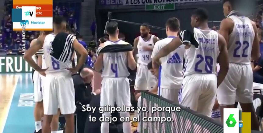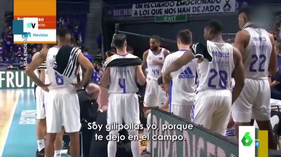 La última 'lasina' se la ha dado a Tristan Vukcevic, aunque, parece que se la está dando a sí mismo. Y es que como se puede ver en las imágenes del vídeo, que se encuentra encima de estas líneas, el entrenador abronca duramente al serbio: "Soy gilipollas porque te dejo en el campo".