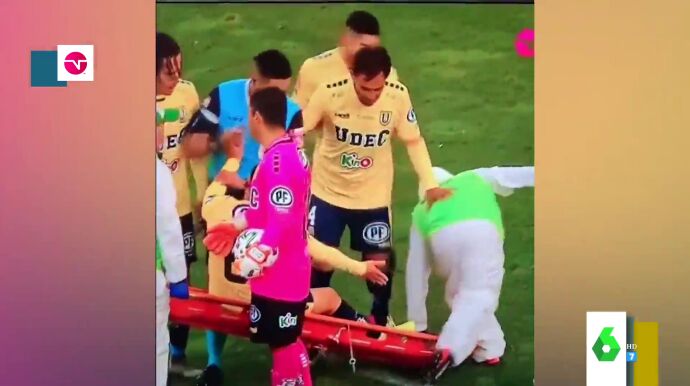 Isabel Forner muestra este cómico vídeo en Zapeando donde un camillero se enfada con varios futbolistas en el campo al no ser capaz de levantar la camilla con un lesionado.