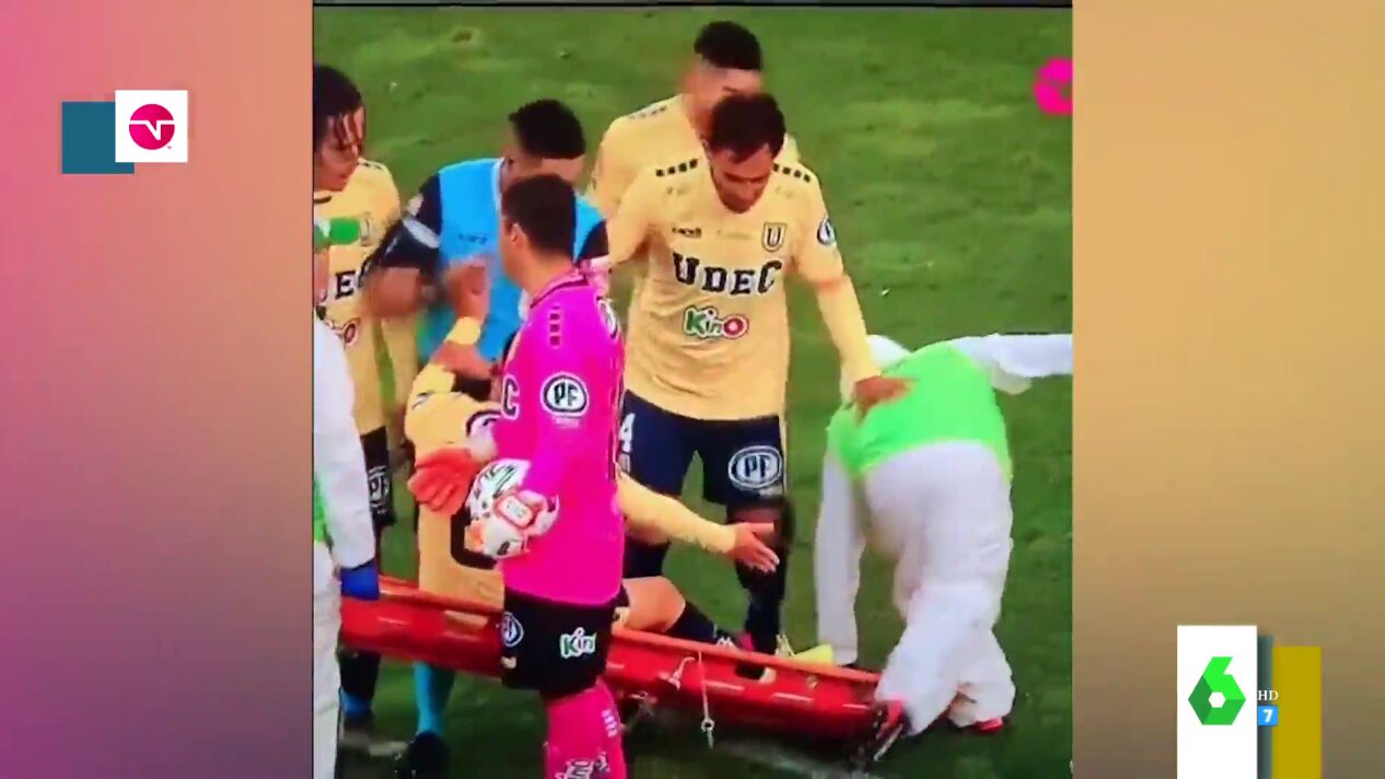 El surrealista enfado de un camillero con los futbolistas por su propia torpeza: así se cae de culo dentro de su camilla