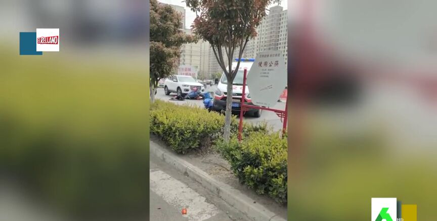 En el vídeo principal de esta noticia puedes ver cómo después de que un conductor atropellara a un repartidor, la ambulancia que acude a atenderle también le atropella mientras se encuentra tendido en el suelo.