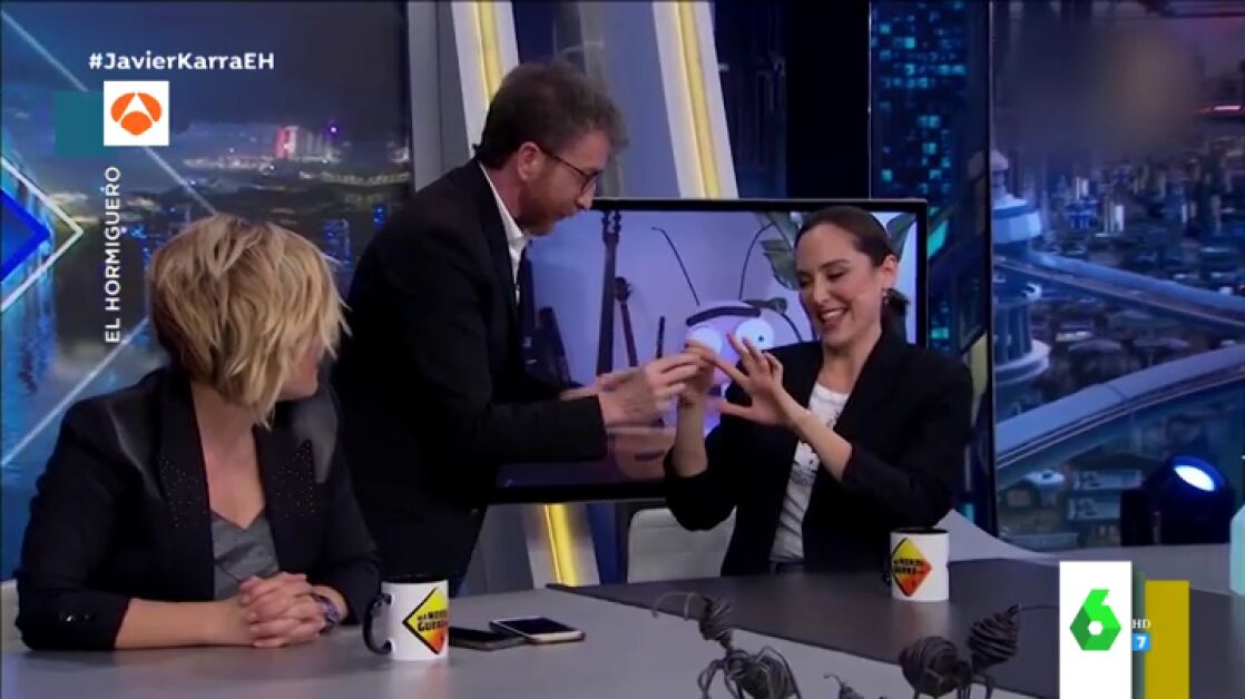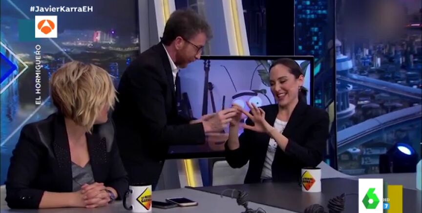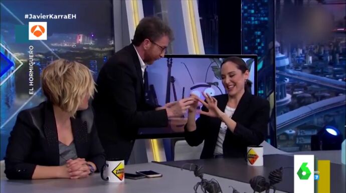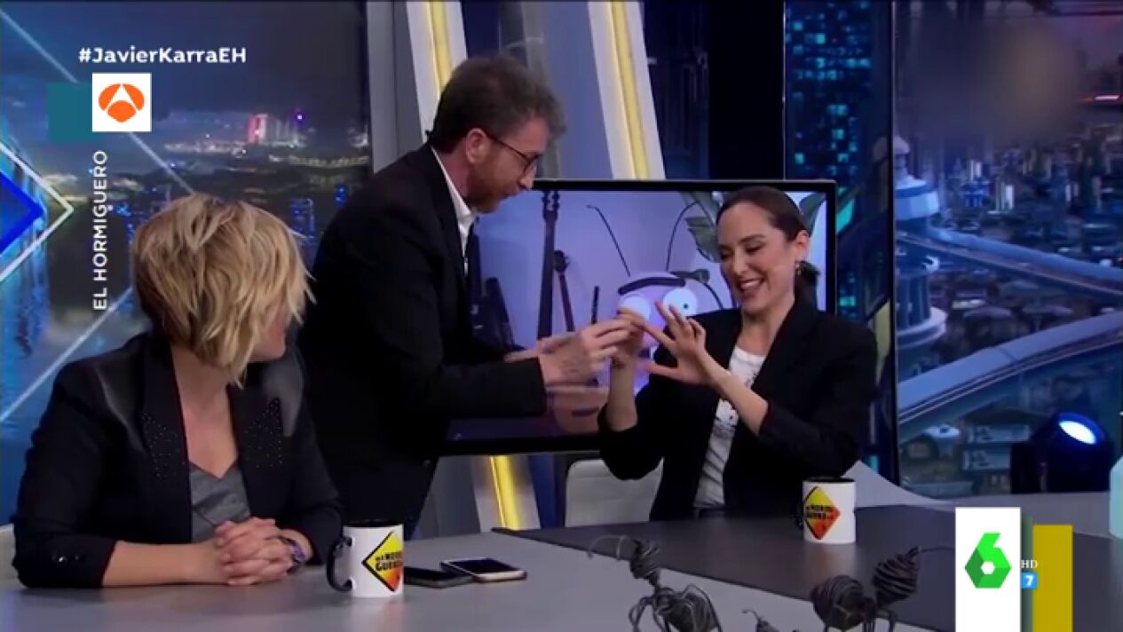 A Tamara Falcó sí se le caen los anillos. Al menos eso es lo que ocurrió cuando jugaba con uno de ellos mientras estaba siendo entrevistada en 'El Hormiguero'. Pablo Motos se levanta para recogerlo y hace una apreciación que hace saltar todas las alarmas: "Es un anillo como un brillante. Parece de compromiso". Como bien apunta Lorena Castell, en ese momento Falcó ni confirma ni desmiente que sea de compromiso. "¿Qué va a ser?", responde Dani Mateo a ese comentario.