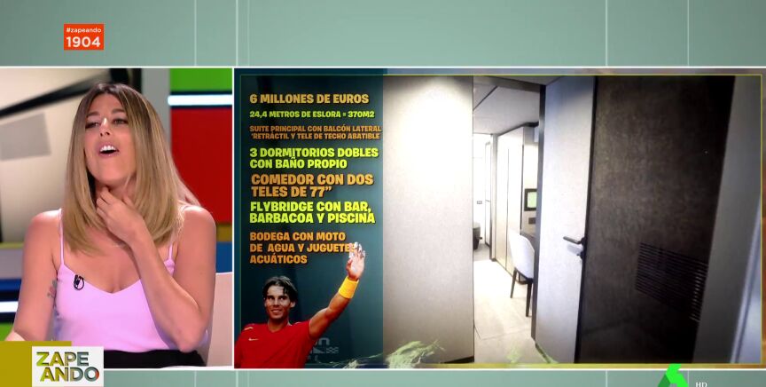 Los zapeadores se encontraban hablando de la barbacoa que tiene Rafael Nadal en su nuevo catamarán de seis millones de euros cuando Valeria Ros ha contado que el tenista puede hacer celebraciones en su flybridge con bar y piscina, pero que "no toma chorizo, porque tiene 'globo histérico'", al igual que le ocurre a ella. Para el que no lo sepa, el 'globo histérico' es la sensación de tener un bulto en la garganta cuando no existe, y puede ser consecuencia de una sensibilidad o de una actividad muscular anormal del esófago.