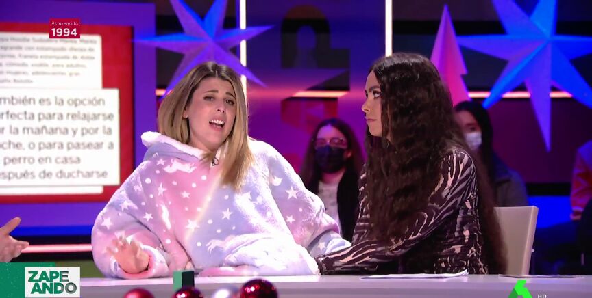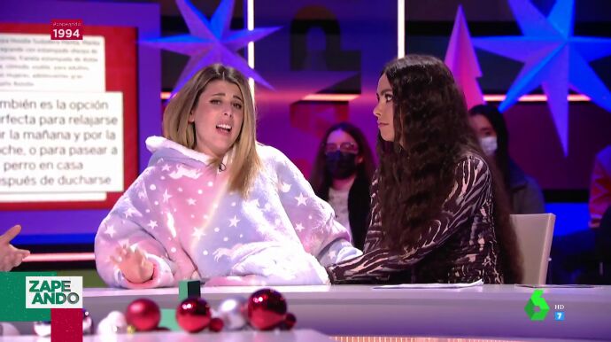 Valeria Ros hace una entrada triunfal en plató vestida con una "sudaderamanta" de unicornio que llama la atención de Cristina Pedroche, quien, incluso, la usa para calentarse las manos.