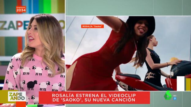 Valeria Ros, en cambio, sorprende a sus compañeros con su opinión acerca de la cantante catalana: "Yo necesito escucharla mucho, para mí Rosalía es como la cerveza, al principio no tal, luego bebo y me encanta". Puedes ver la reacción del resto de zapeadores y parte del videoclip de 'Saoko' en el vídeo que ilustra estas líneas.