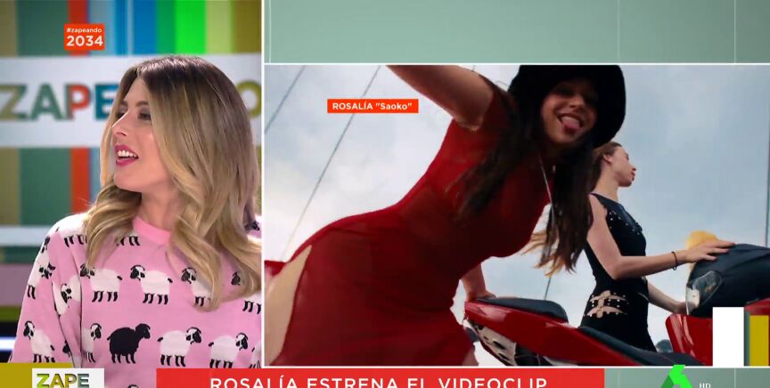 Los zapeadores comentan en directo el videoclip de 'Saoko', la nueva canción de Rosalía, un tema que no deja indiferente a nadie en el plató: "No entiendo una sola frase, pero no puedo parar de cantarla", reconoce Dani Mateo, mientras que Cristina Pedroche defiende que "una vez más, Rosalía demostrando lo que es, una diosa".