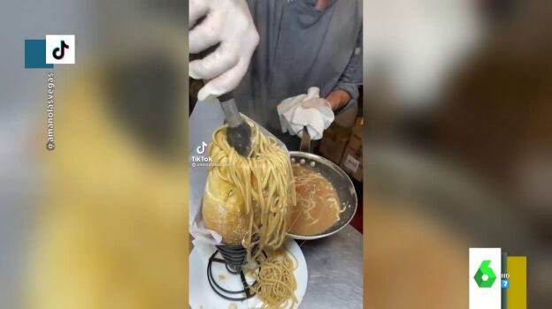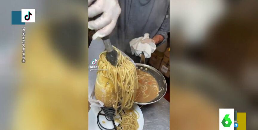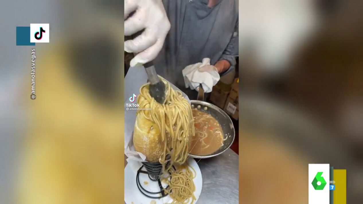 El vídeo viral del bocata más surrealista del mundo que triunfa en Las Vegas: tallarines, pollo asado y tropezones