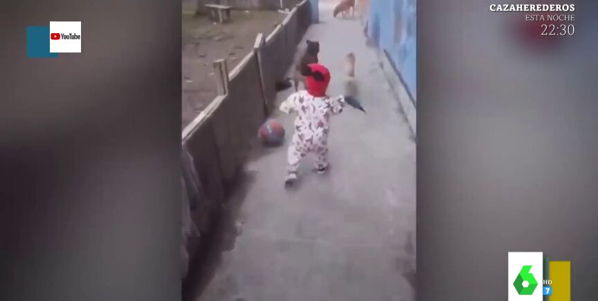 En cuanto el niño pasa a su lado, capta su atención y regresa para observarlo de cerca. Lo curioso es que al inicio de la grabación esa pelota no estaba colocada ahí, y en cuanto aparece se puede observar que está girando, "como si alguien la hubiese colocado de una patada en ese lugar", apuntan los zapeadores, que son incapaces de descifrar el misterio.
