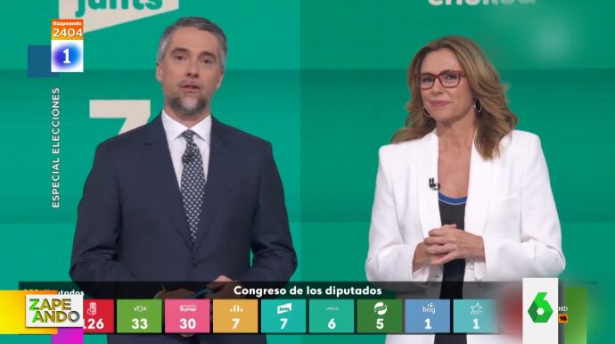 Durante la jornada de las elecciones generales, en las televisiones "también hubo mandanguilla", avanza Berta Collado a sus compañeros de Zapeando, a los que muestra esta anécdota que le sucedió a la periodista Esther Palomares durante el especial elecciones que se emitió en TVE.