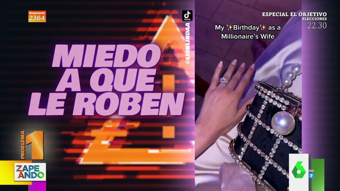 Uno de los más importantes es el miedo a que te roben, pues si llevas en la mano joyas de 10 mil dólares y bolsos de 40 mil, "tienes miedo a que un pobre te los robe", apunta el zapeador. Además, confiesa que tiene que estar siempre perfecta, por lo que desembolsa ocho mil dólares al mes en productos y tratamientos de belleza. "Vosotros trabajáis ocho horas pero ella tiene que currárselo 24/7", apunta Thais Villas.