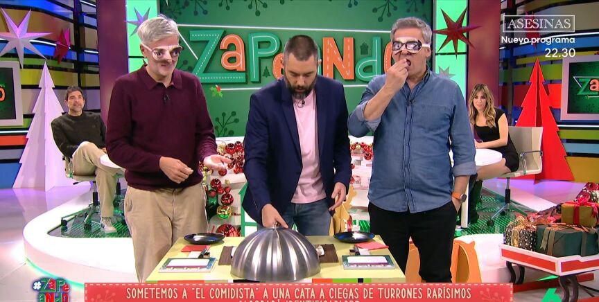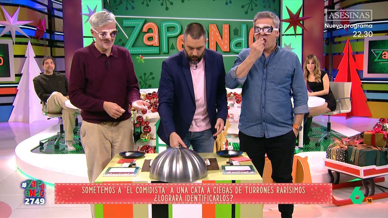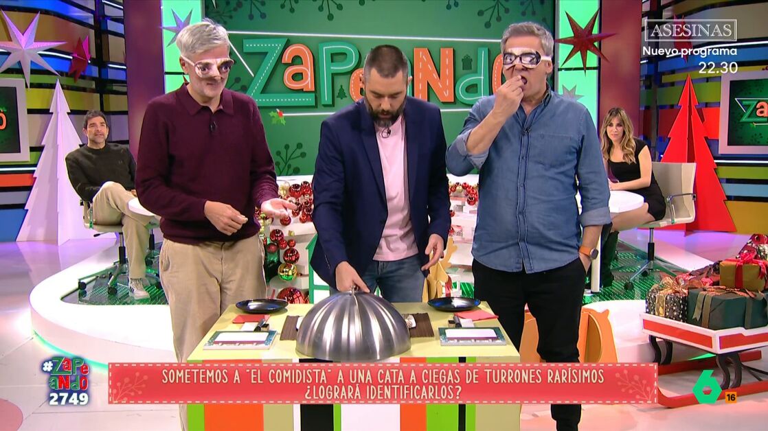 Zapeando ha querido poner a prueba a Mikel López Iturriaga con una cata a ciegas de los turrones más raros que se pueden encontrar en el mercado. Pero, como es habitual en el programa, no se lo van a poner fácil al periodista gastronómico, ya que tendrá que enfrentarse a Miki Nadal.