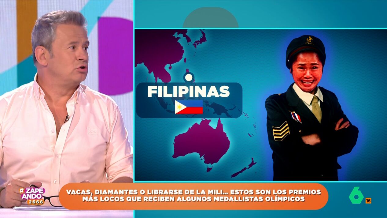 Isabel Forner es la encargada de contar qué premio recibió una deportista filipina por ganar una medalla de oro para su país. Pero esto no es lo que llama la atención de Miki Nadal sino cómo pronuncia Isabel el nombre de la atleta, Hidilyn Díaz. "Le diría el nombre bien, no como haces tú con todo el mundo", le dice Miki.