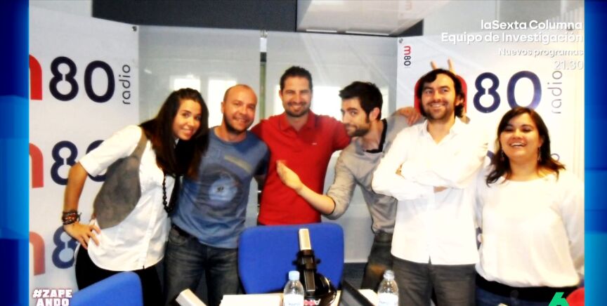 Como explica, la fotografía es de hace diez años y se puede ver al presentador de Zapeando y a la zapeadora en los estudios de M80 con otras personas de la emisora. "Esto era un programa que hacíamos y yo era becaria", explica Gómez, "qué heavy esto".