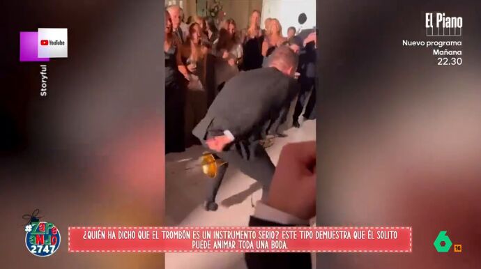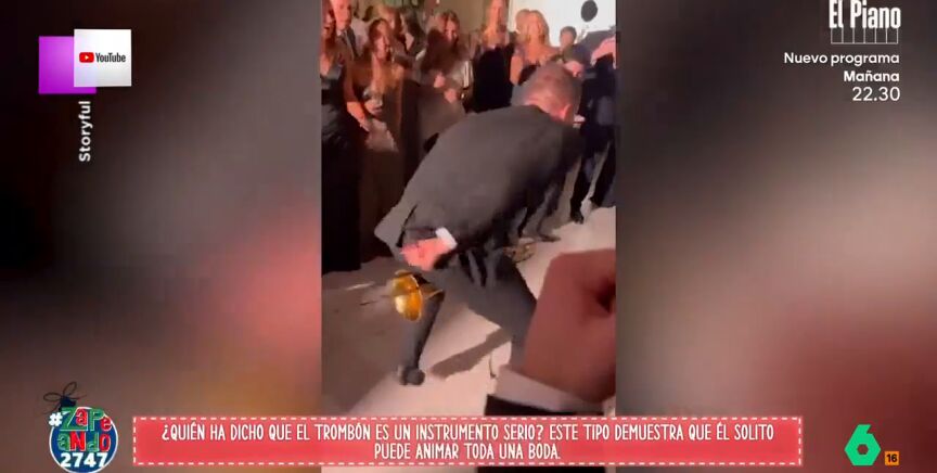Una de las partes más importantes de la celebración de una boda es la fiesta posterior. Contar con una buena animación es vital, por ello Miki Nadal muestra unas imágenes de una boda en las que un chico tocando el trombón se convierte en el protagonista del evento.