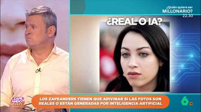 Miki Nadal presentó un entretenido concurso en el que los zapeadores debían adivinar si las imágenes que aparecían en pantalla eran reales o habían sido generadas por inteligencia artificial. La dinámica, que combinó diversión con un toque de desafío, puso a prueba la capacidad de los participantes para detectar los sutiles detalles que diferencian a una foto auténtica de una creada por IA.