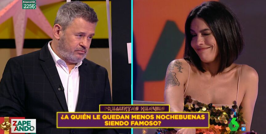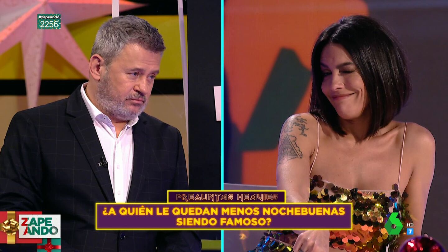 Miki Nadal se enfrenta a la pregunta heavy de Fortu, el cantante de Obús, que le pone en un aprieto al preguntarle: "¿A qué zapeador le quedan menos Nochebuenas siendo famoso?". Si alguien tiene claro el de Zaragoza que le quedan muchos años es a Cristina Pedroche, ya que "se está convirtiendo en tradición", al igual que ya lo son "la capa de Ramon García o las uvas". "No hay más tradición en este país. Y esto seguirá y seguirá", le augura su amigo.