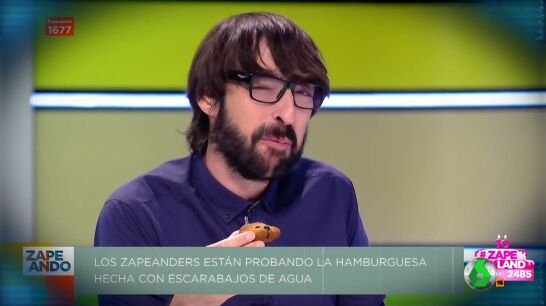"¡Mira los trozos de escarabajo cayendo!": Zapeando recuerda el día que Quique Peinado probó una hamburguesa de insectos