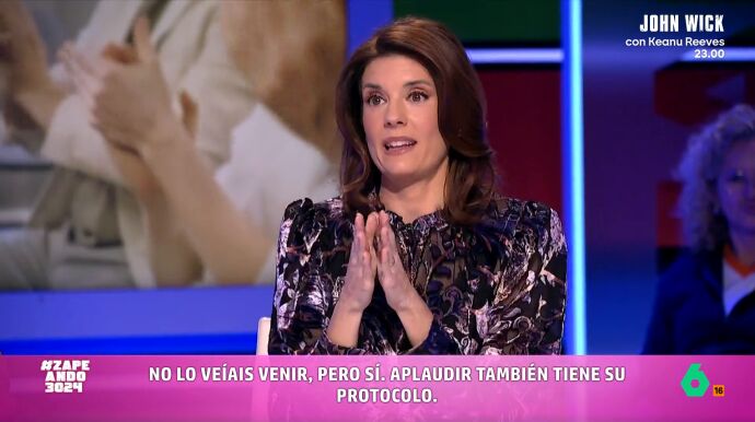 "El modo foca mejor evitarlo", afirma la experta en protocolo en el vídeo sobre estas líneas, donde explica que tampoco debemos aplaudir con las manos por encima de los hombros.
