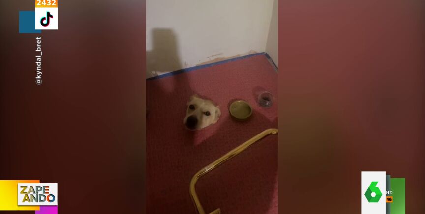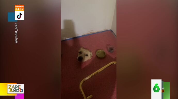 Una mujer escucha ruidos en el baño de su casa y lo que encuentra es sorprendente: ¡un perro atascado en el suelo!